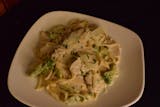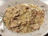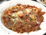 Baby clams & shrimp cooked with sundried tomatoes & mushrooms, in a special homemade Alfredo sauce.